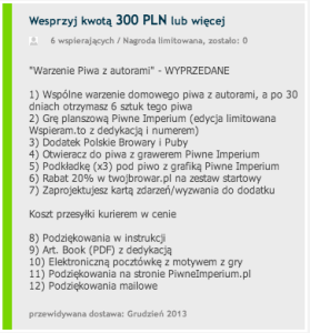 Należy pamiętać również, że wspierający również nic nie tracą. Wpłata konkretnej kwoty najczęściej wiąże się z przyznaniem nagrody, adekwatnej do progu wsparcia.